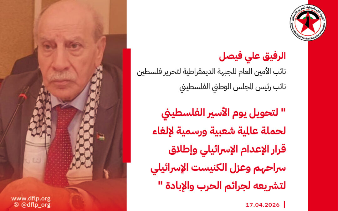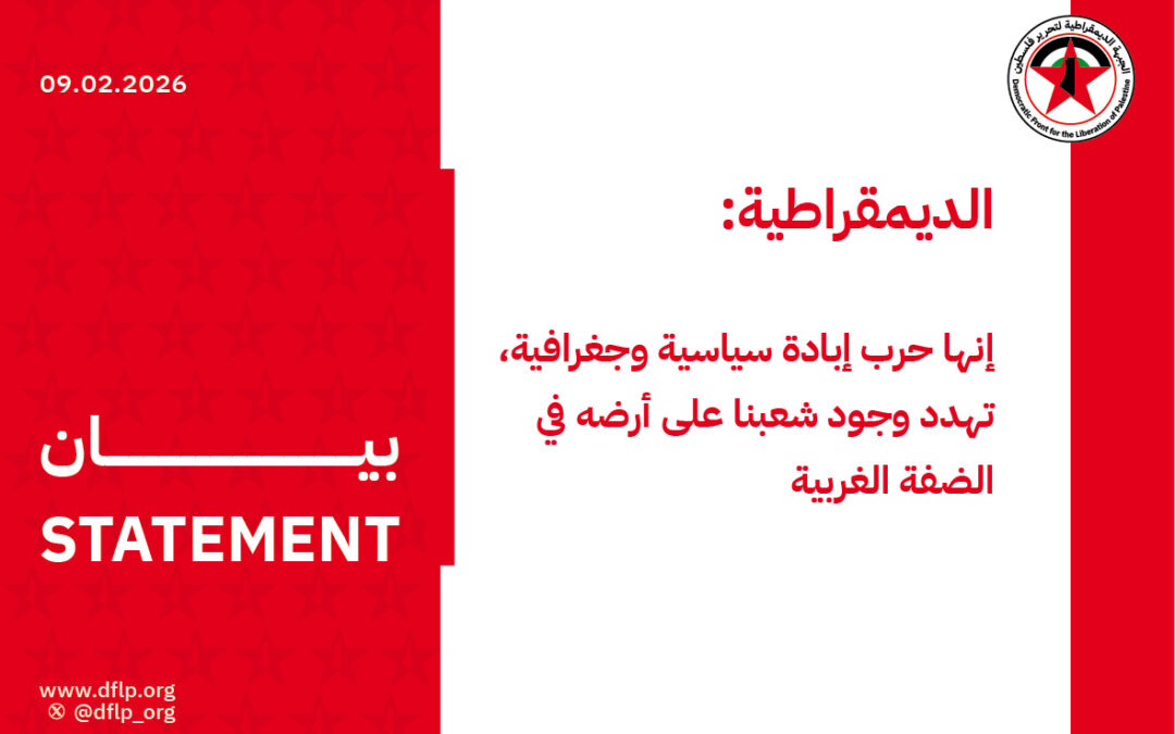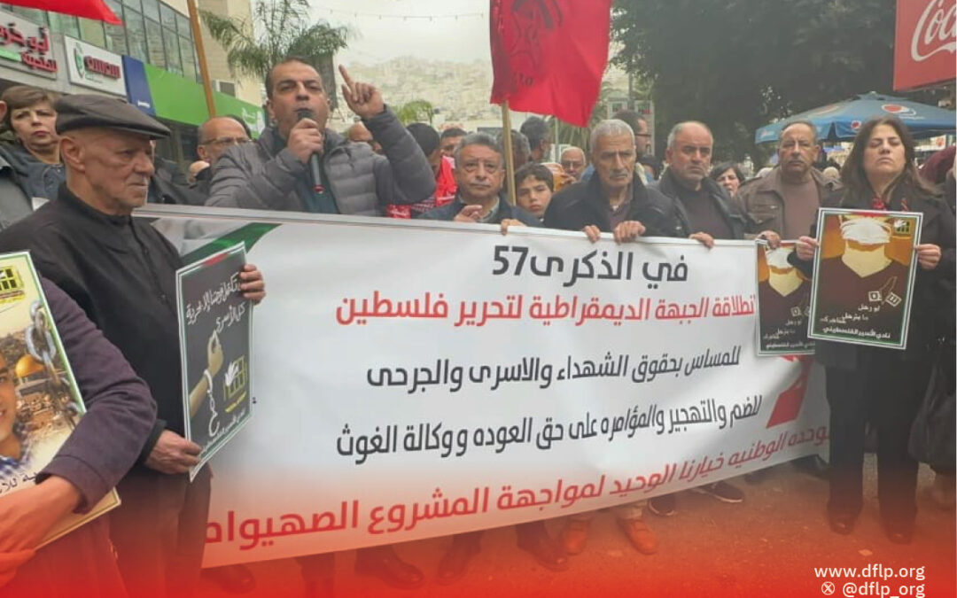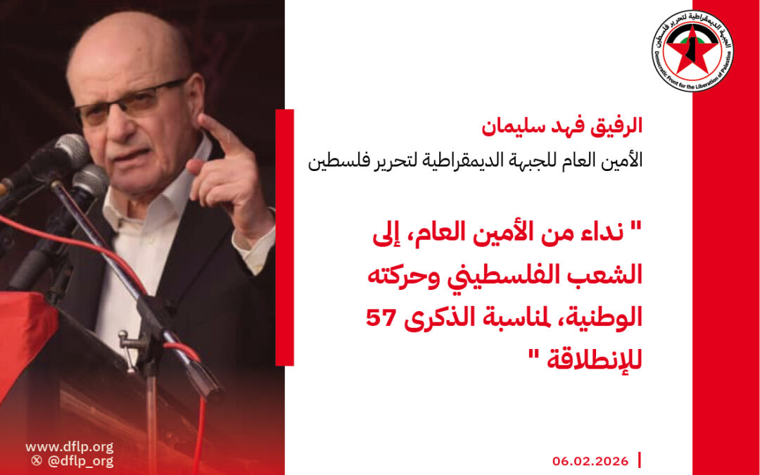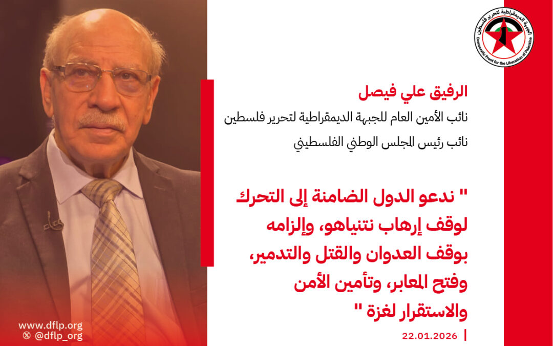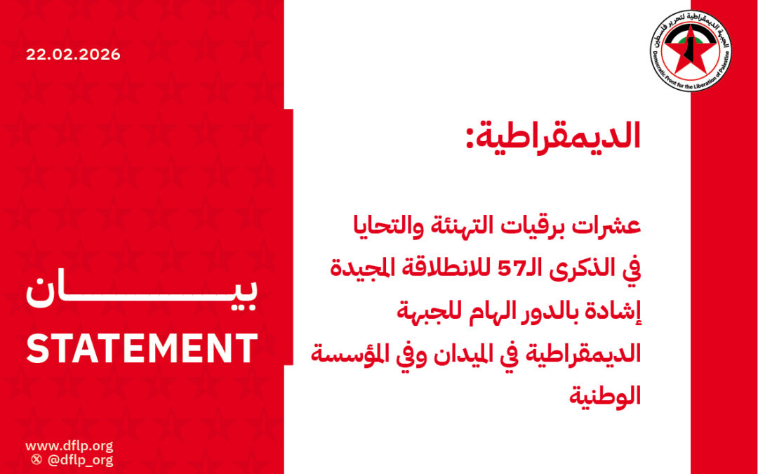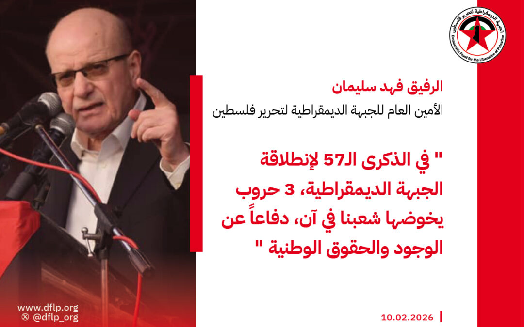 تأسست الجبهة الديمقراطية لتحرير فلسطين في 22/2/1969، وهي فصيل يساري يسترشد بالاشتراكية العلمية كمرجعية فكرية وكمنهج علمي لتحليل الواقع الاجتماعي. تعتبر الجبهة الديمقراطية إن الثورة الفلسطينية، جزء لا يتجزأ من النضال الذي تخوضه شعوب العالم.