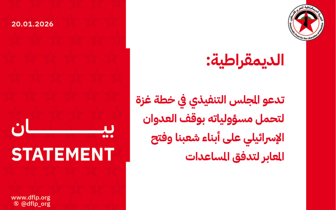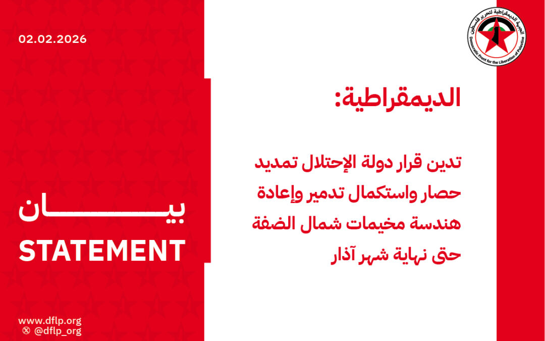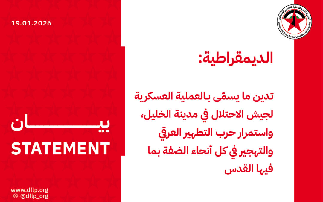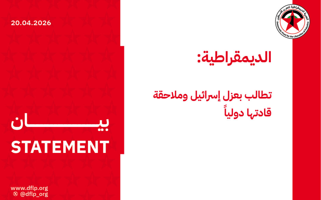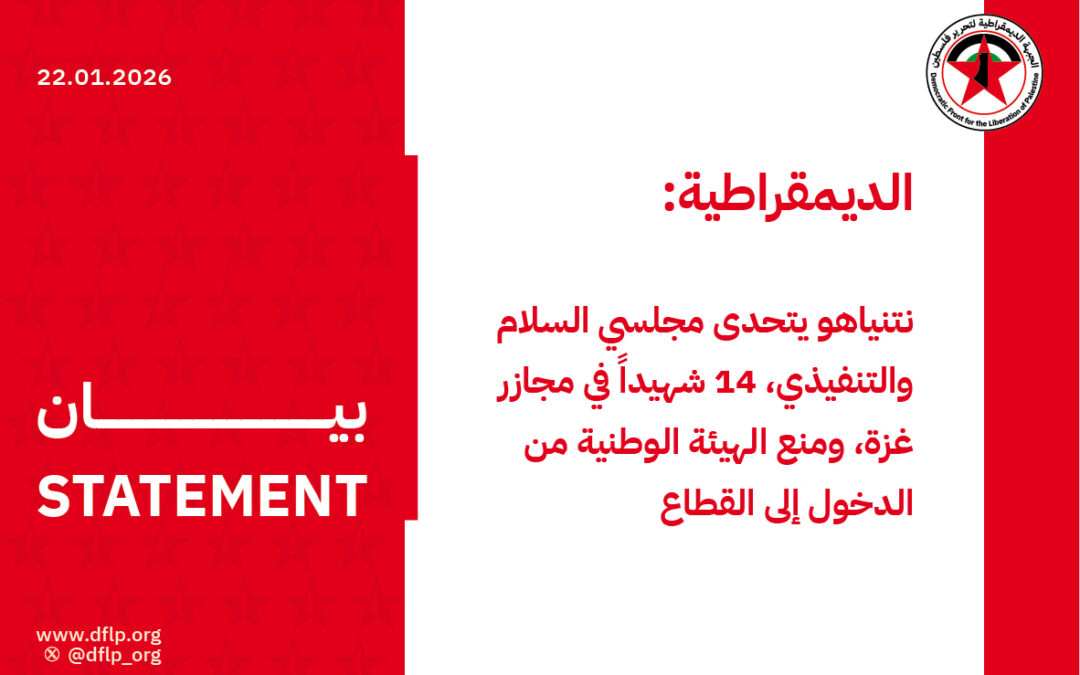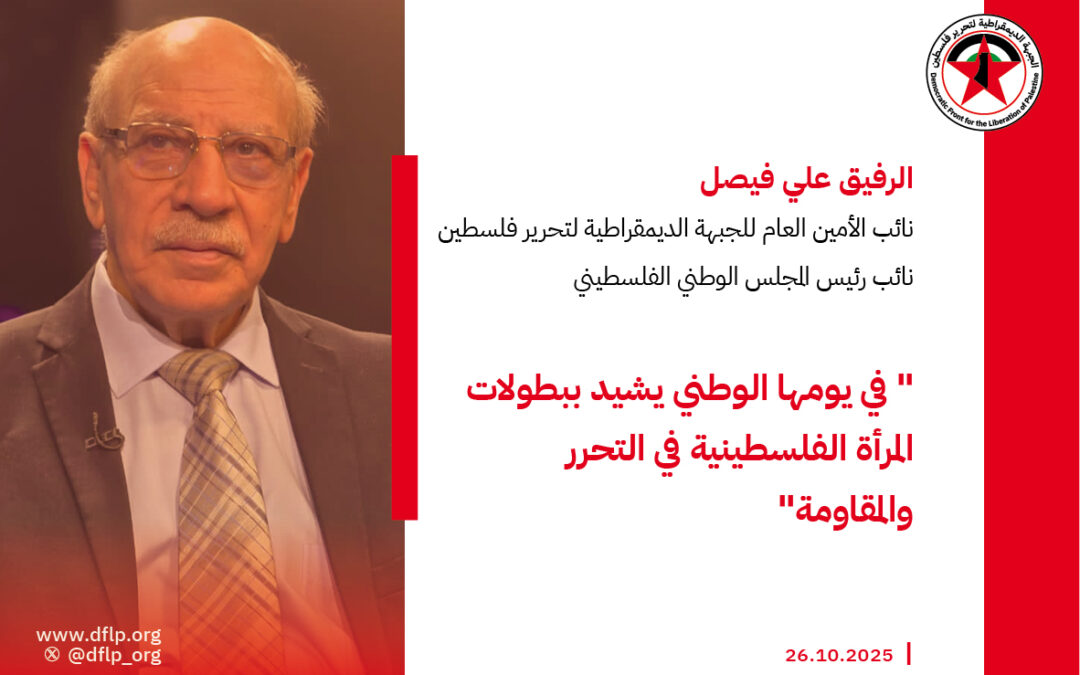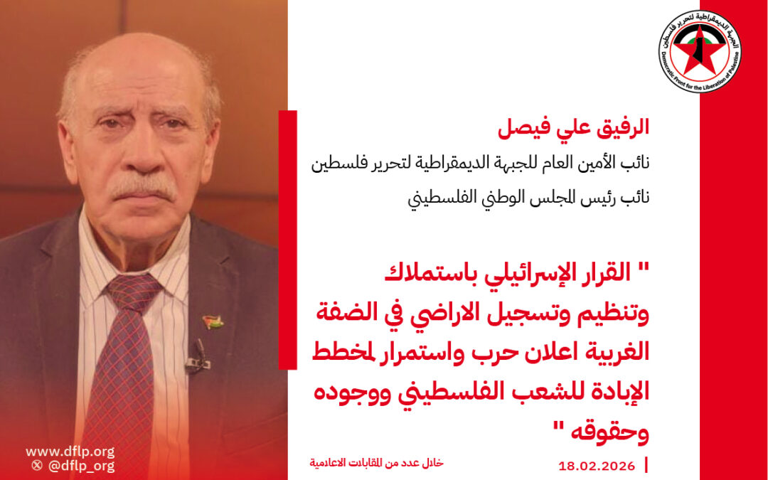 تأسست الجبهة الديمقراطية لتحرير فلسطين في 22/2/1969، وهي فصيل يساري يسترشد بالاشتراكية العلمية كمرجعية فكرية وكمنهج علمي لتحليل الواقع الاجتماعي. تعتبر الجبهة الديمقراطية إن الثورة الفلسطينية، جزء لا يتجزأ من النضال الذي تخوضه شعوب العالم.