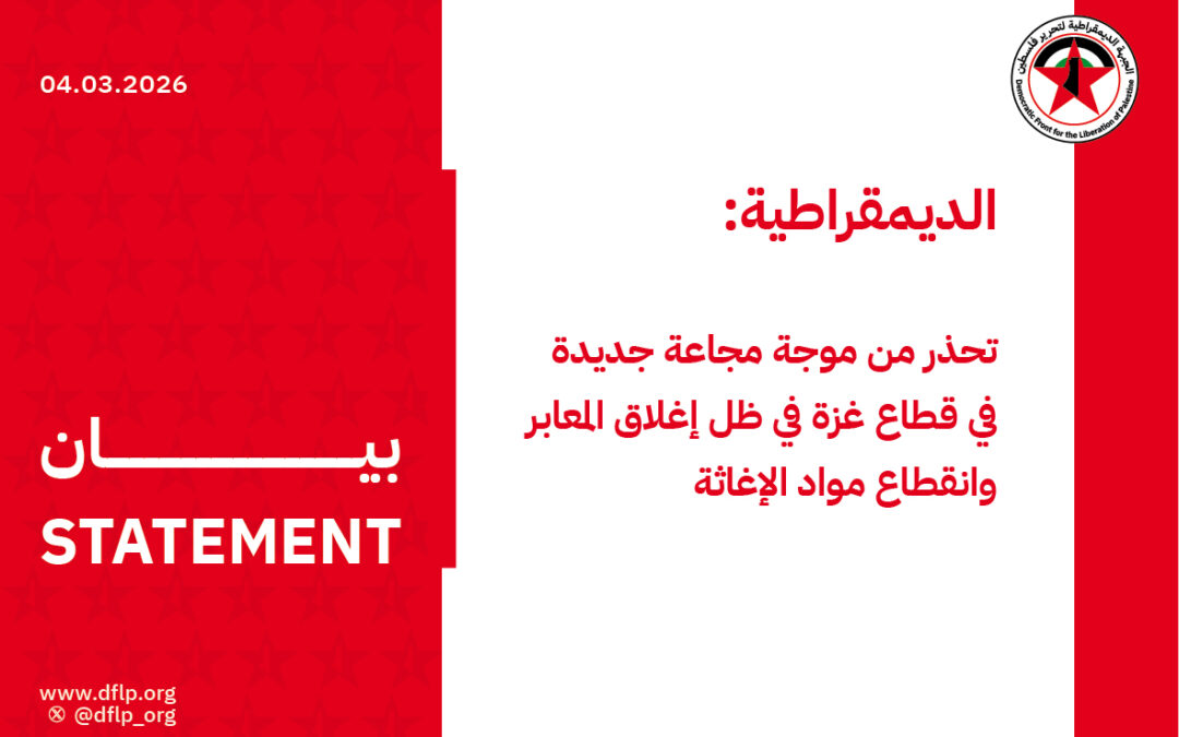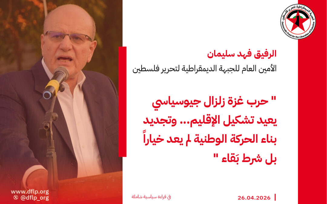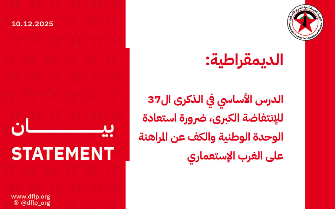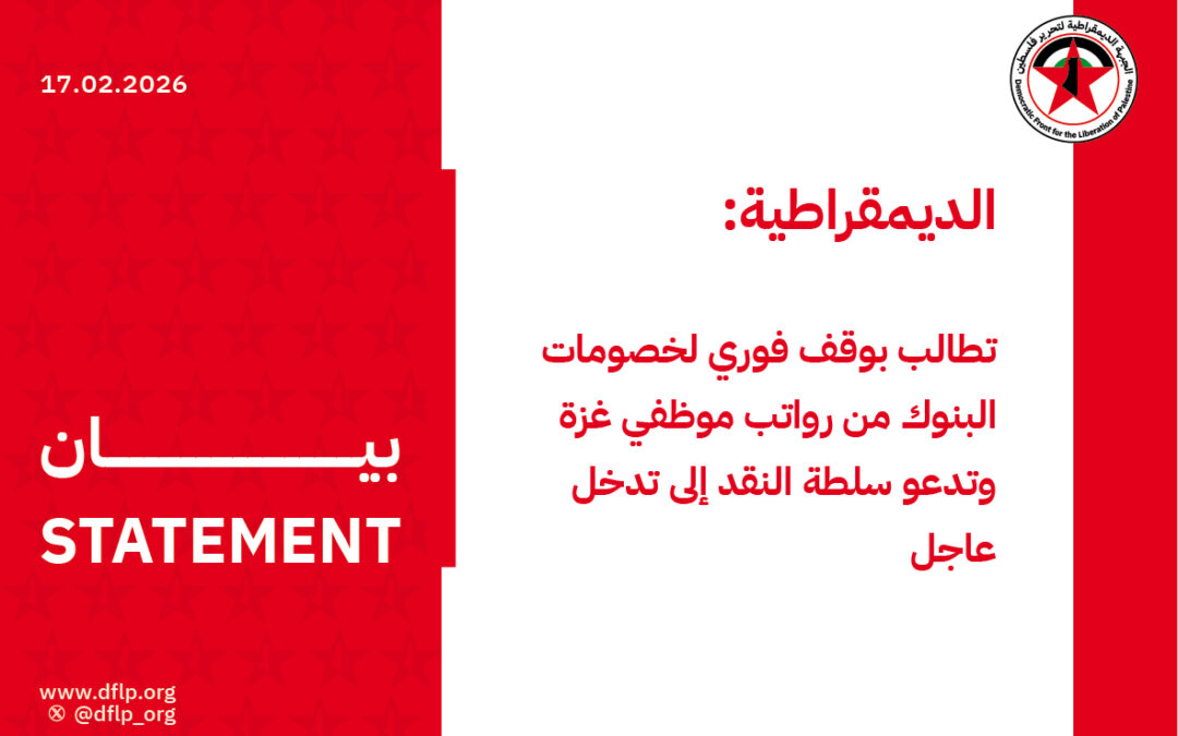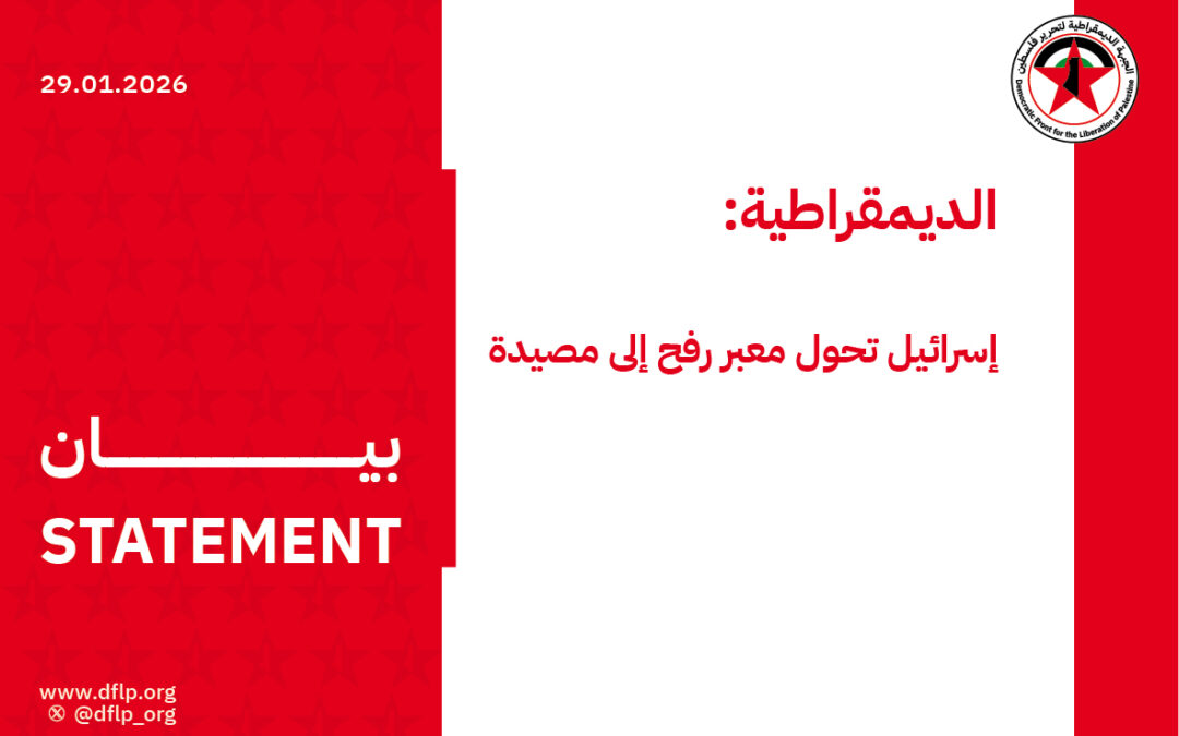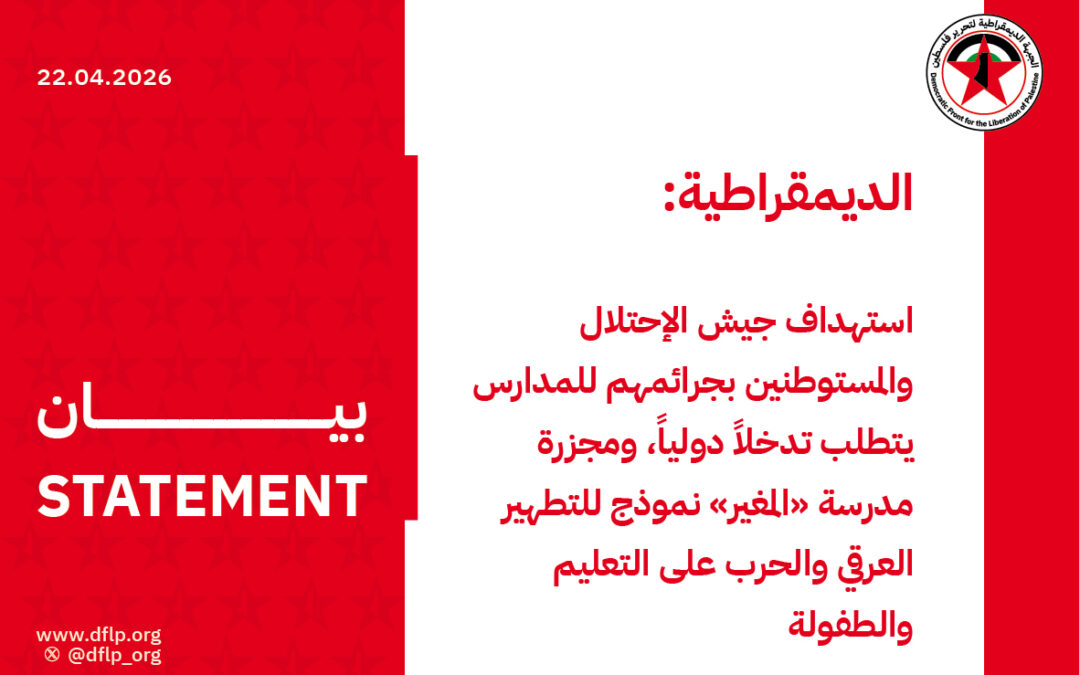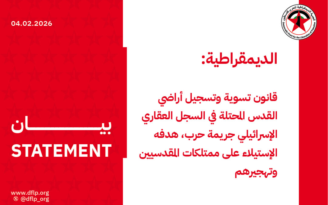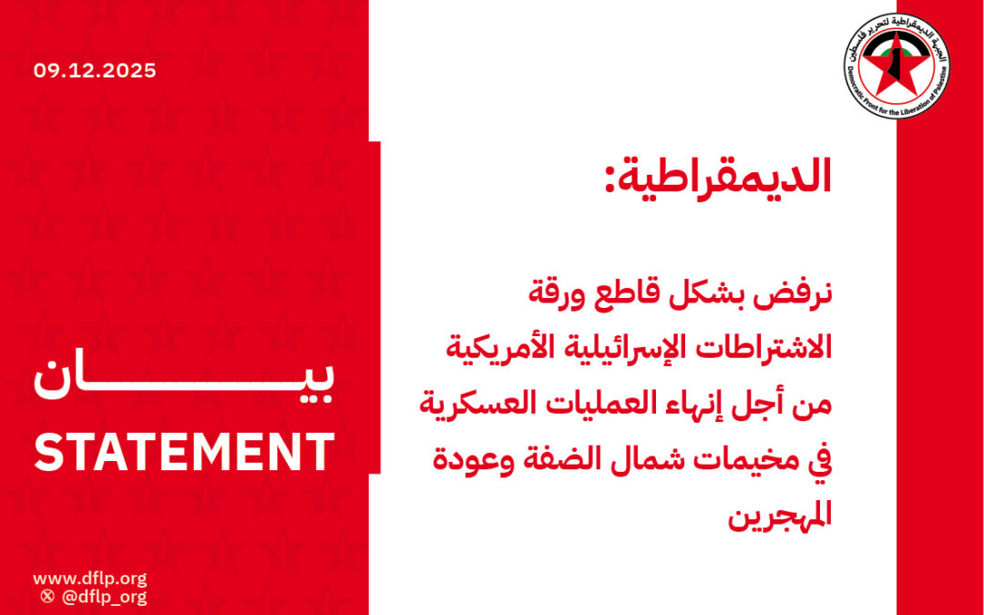 تأسست الجبهة الديمقراطية لتحرير فلسطين في 22/2/1969، وهي فصيل يساري يسترشد بالاشتراكية العلمية كمرجعية فكرية وكمنهج علمي لتحليل الواقع الاجتماعي. تعتبر الجبهة الديمقراطية إن الثورة الفلسطينية، جزء لا يتجزأ من النضال الذي تخوضه شعوب العالم.