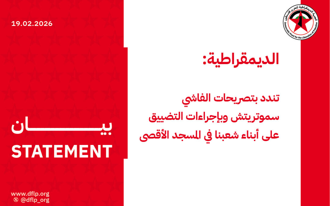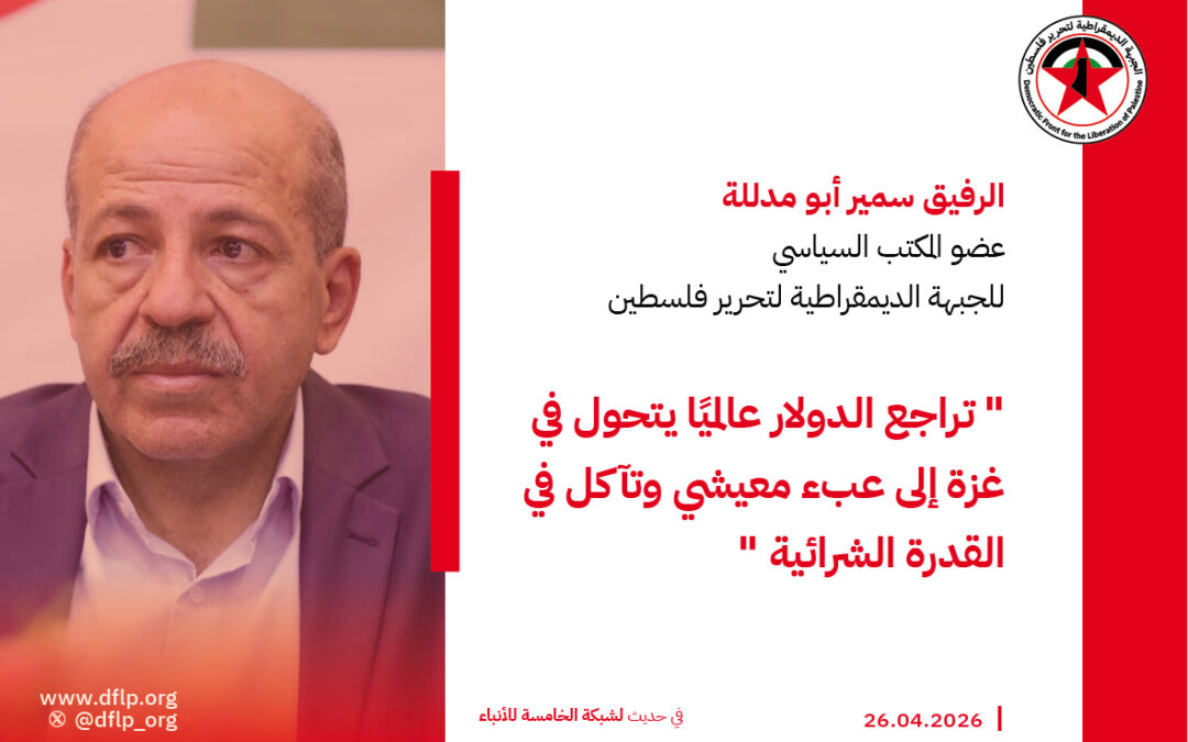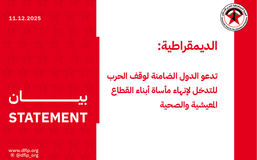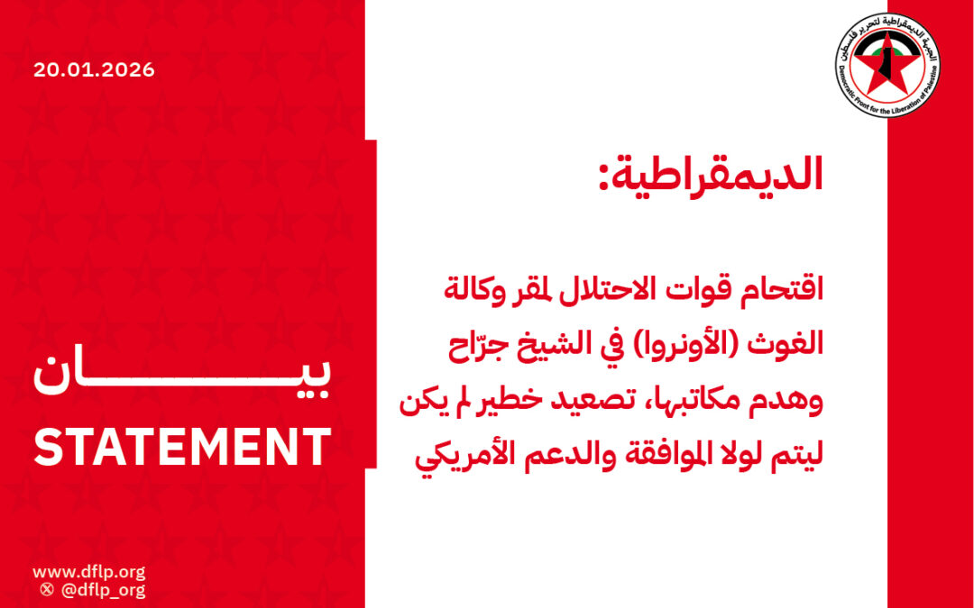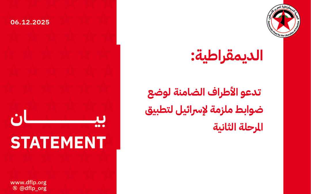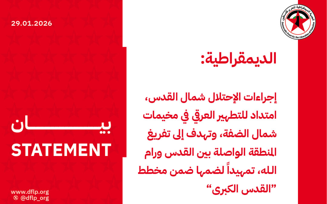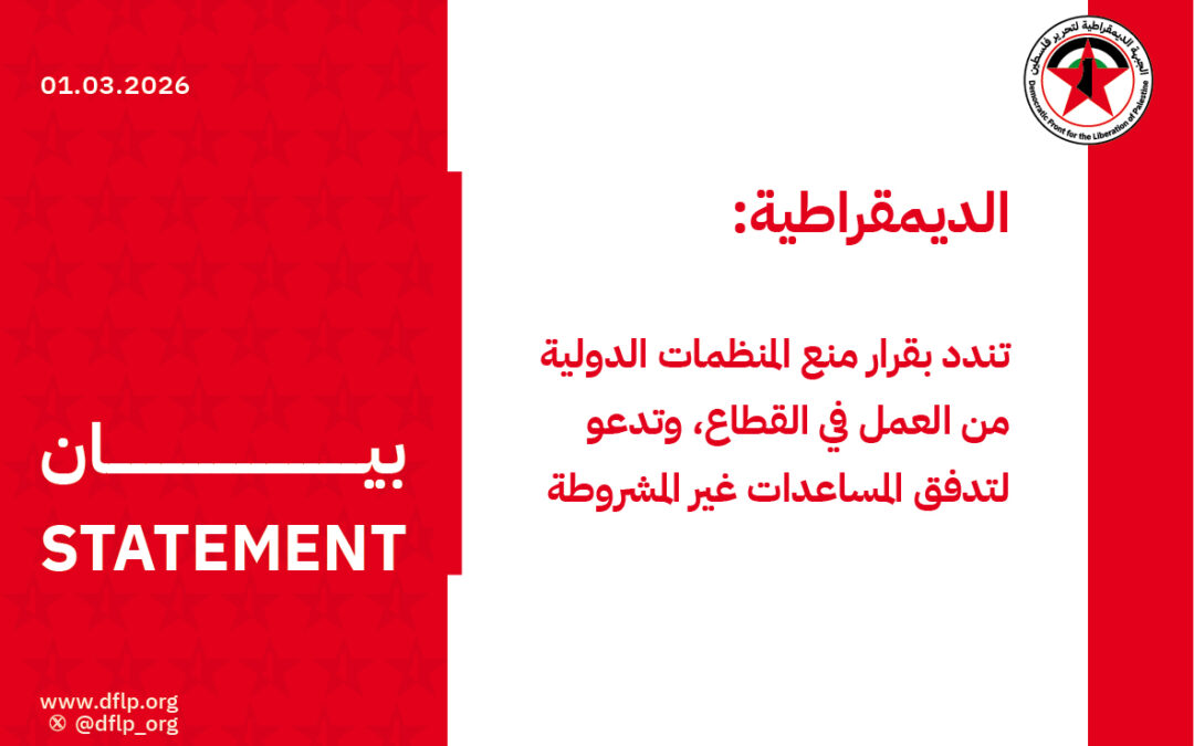 تأسست الجبهة الديمقراطية لتحرير فلسطين في 22/2/1969، وهي فصيل يساري يسترشد بالاشتراكية العلمية كمرجعية فكرية وكمنهج علمي لتحليل الواقع الاجتماعي. تعتبر الجبهة الديمقراطية إن الثورة الفلسطينية، جزء لا يتجزأ من النضال الذي تخوضه شعوب العالم.