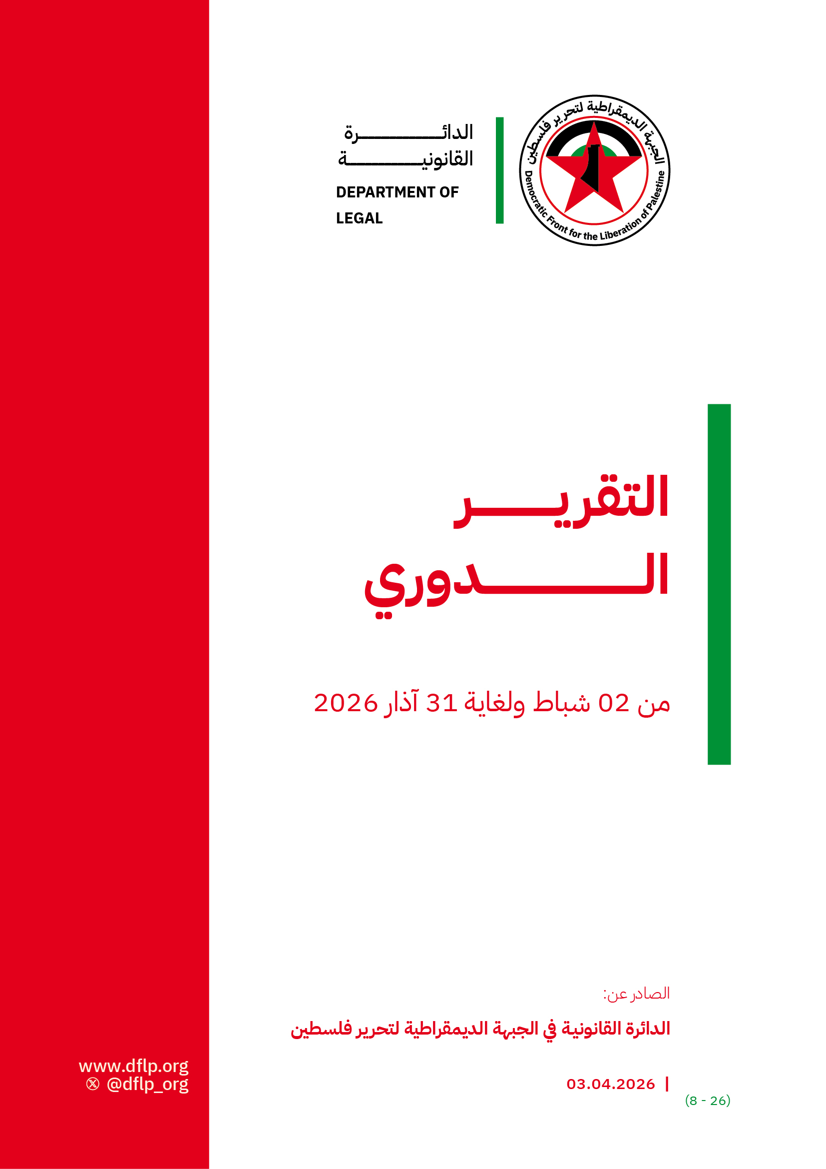 التقرير القانوني الثامن، الصادر عن الدائرة القانونية في الجبهة الديمقراطية لتحرير فلسطين، حرب الإبادة في قطاع غزة والضفة الغربية: القانون الدولي بين المساءلة القضائية والضغوط السياسية