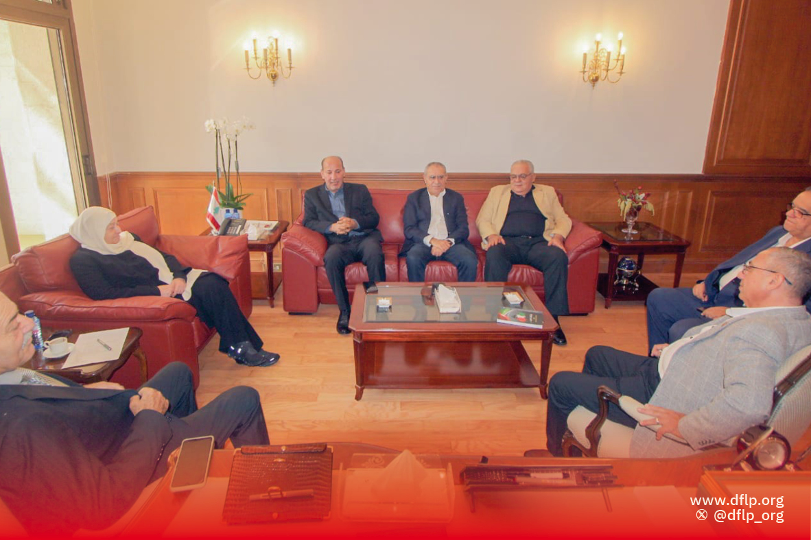 وبحث وفد الجبهة كذلك في أوضاع المخيمات الفلسطينية والهموم الاجتماعية والاقتصادية الصعبة التي يعيشها اللاجئون الفلسطينيون في لبنان، في ظل استمرار حرمانهم من حقوقهم الإنسانية والاجتماعية. وأكد وفد الجبهة على أهمية تفعيل الحوار مع الجهات اللبنانية المعنية من أجل إقرار الحقوق والإنسانية للاجئين وفي مقدمتها حق العمل والتملك ومعالجة عدد من المشكلات ومنها السماح بإدخال مواد الاعمار للمخيمات.وتنظيم العلاقات اللبنانية الفلسطينية على أسس سليمة ومتينة تضمن المصلحة المشتركة للشعبين الشقيقين.