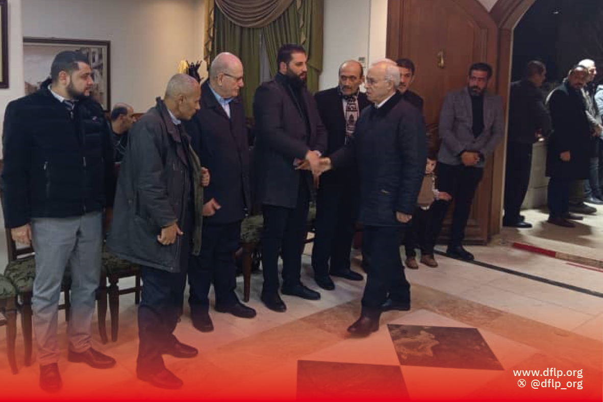 دمشق، توافد المئات إلى صالة العزاء يقدمون واجب العزاء إلى الجبهة الديمقراطية لتحرير فلسطين، برحيل عضو مكتبها السياسي وأحد مؤسسيها القائد الوطني الكبير الرفيق أحمد زكي عبد العال (خالد عطا)، الذي رحل عنا، مؤدياً واجباته النضالية والكفاحية، نحو شعبه وقضيته، ونحو الجبهة الديمقراطية لتحرير فلسطين، نموذجاً في التفاني والعطاء والتضحية والإخلاص.