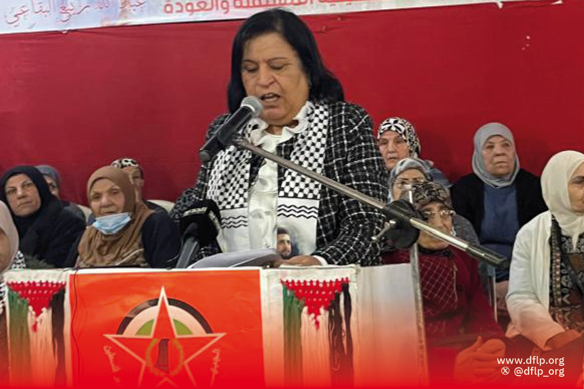 كلمة الجبهة الديمقراطية لتحرير فلسطين ألقتها: الرفيقة خالدات حسين عضو المكتب السياسي للجبهة الديمقراطية لتحرير فلسطين، تطرقت في كلمتها الى تواصل العدوانيه الاسرائيليه على قطاع غزه رغم اتفاق شرم الشيخ و القرار الاممي 2803 لوقف الحرب، وعلى اصرار نتنياهو و حكومته على تغطية فشله في تحقيق اهداف العدوان على القطاع عبر نسف المرحلة الثانيه من تطبيقات الاتفاق واغلاق الطريق امام اللجنه الوطنيه لادارة غزه واستمراره بالقصف واغلاق المعابر وتعريض ابناء شعبنا للموت بردا و جوعا.