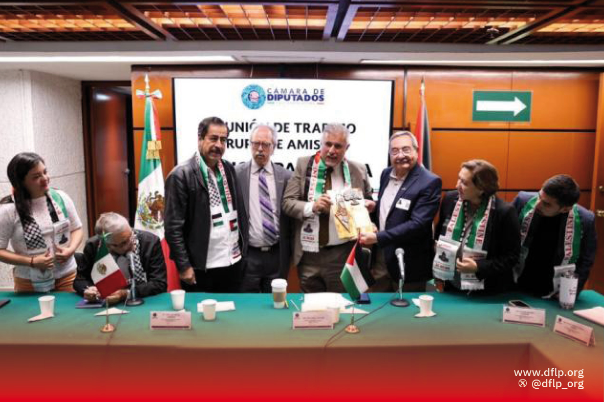 مكسيكو، عقد وفد دائرة مناهضة الفصل العنصري في منظمة التحرير الفلسطينية اجتماعًا رسميًا في مقر البرلمان المكسيكي مع لجنة الصداقة المكسيكية – الفلسطينية، بحضور رئيس اللجنة خوسيه هريرا ونائبه خوسيه سانشيز، وعدد من النواب ومساعديهم، إلى جانب ممثلين عن أحزاب «مورينا» و«العمل» و«الخضر»، وأعضاء التحالف اللاتيني لمناهضة الأبارتهايد، وضم الوفد الفلسطيني كلاً من الرفيق رمزي رباح عضو المكتب السياسي للجبهة الديمقراطية لتحرير فلسطين عضو اللجنة التنفيذية لمنظمة التحرير الفلسطينية ورئيس دائرة مناهضة الفصل العنصري، والدكتور ماهر عامر المدير العام للدائرة، ومحمد عبد السلام عضو المجلس الوطني الفلسطيني ورئيس شبكة المنظمات الفلسطينية الأمريكية، وكمال حسن منسق الدائرة في أمريكا اللاتينية، إلى جانب ومنسق التحالف اللاتيني لمناهضة الأبارتهايد والاستعمار الاستيطاني في المكسيك.الرفيق ربوان كوريرا، وعضو قيادة التحالف اللاتيني لمناهضة الأبارتهايد بيدروا جالرت.
