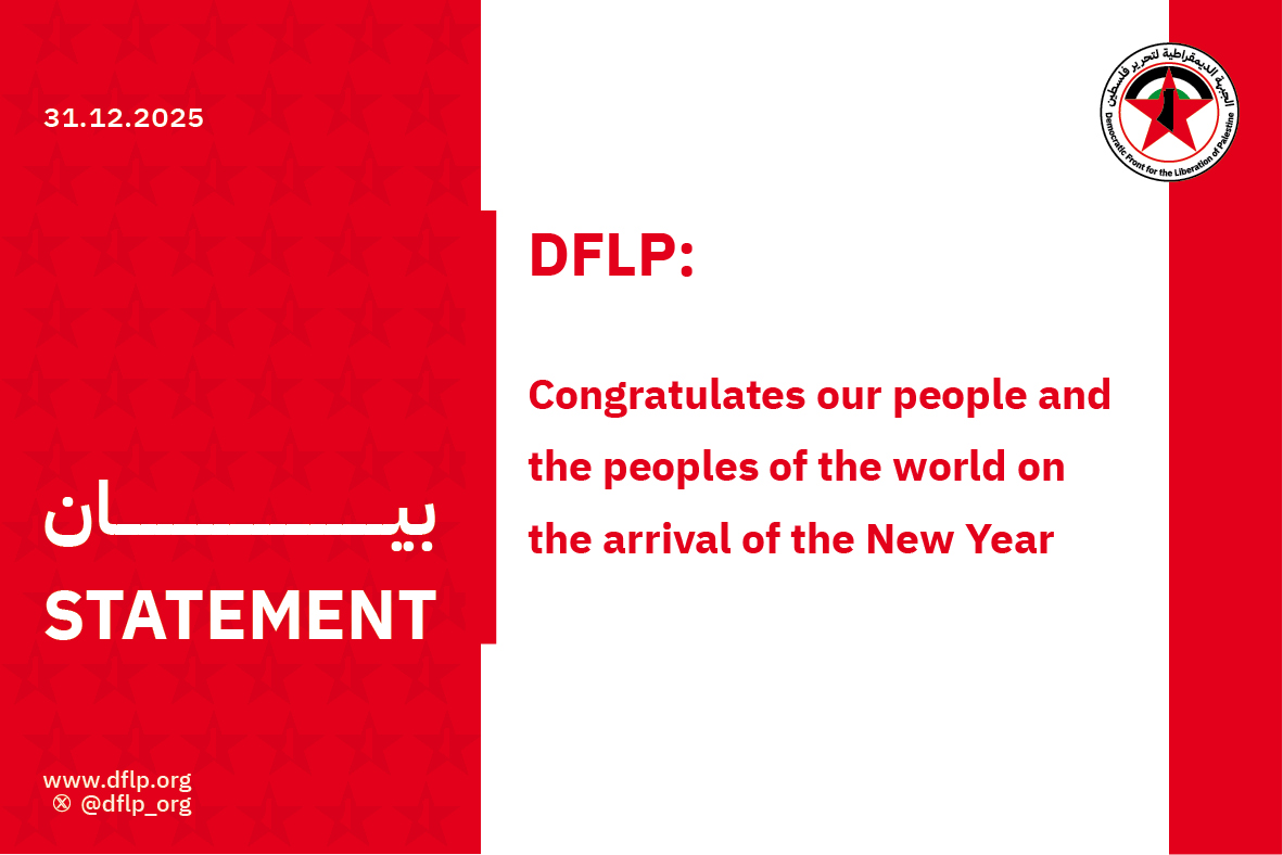 The Democratic Front for the Liberation of Palestine issued a statement congratulating our Palestinian people in the homeland and the diaspora, and all the peoples of the world, on the arrival of the new year 2026, wishing everyone health, safety, happiness and a bright future.