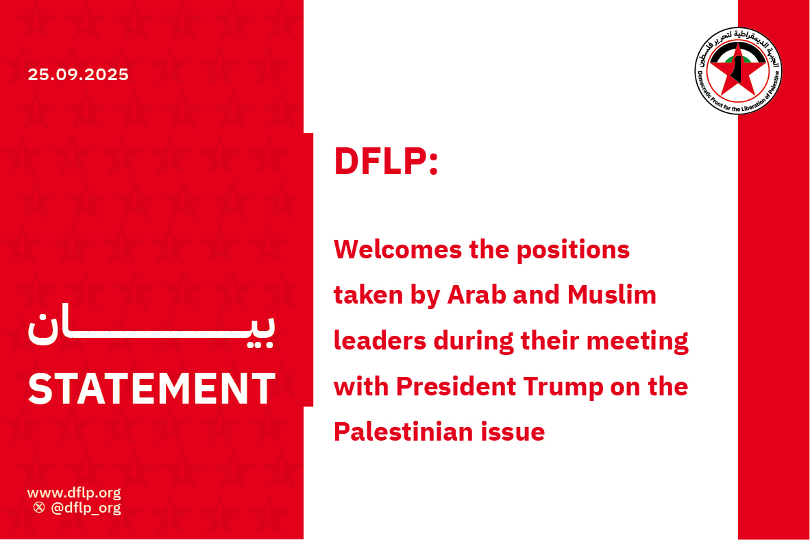 In a statement, the Democratic Front for the Liberation of Palestine welcomed the positions taken by Arab and Muslim leaders who met with US President Trump to discuss the Palestinian issue and the situation in the Gaza Strip.